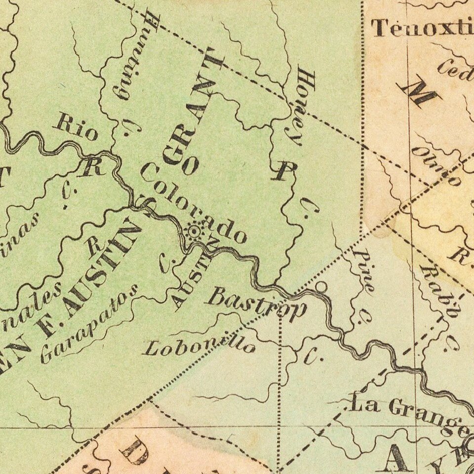 In 1835, Bradford issued a small map of the Texas shortly before it became a Republic. In 1838, Bradford issued his Illustrated Atlas, a much larger and more lavish production, which included the present map. It includes all of the empresario land grants and colonies, as well as the early county configurations.