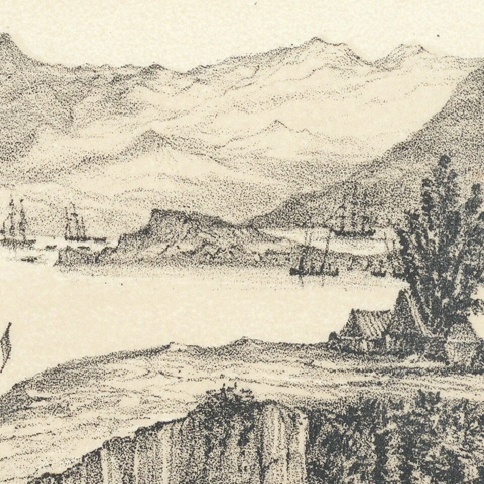 Fine early lithographic view of Hong Kong, "Drawn by B. Clayton from painting by Piqua."