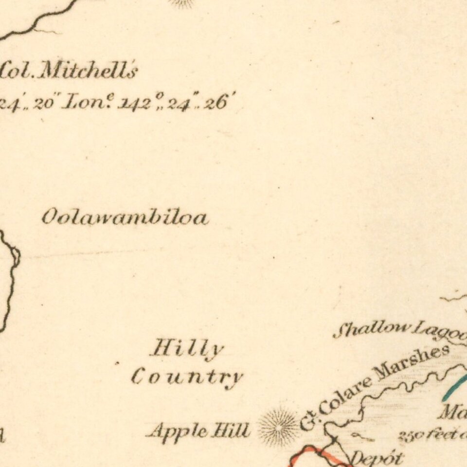 The map shows early Australian overland explorations: