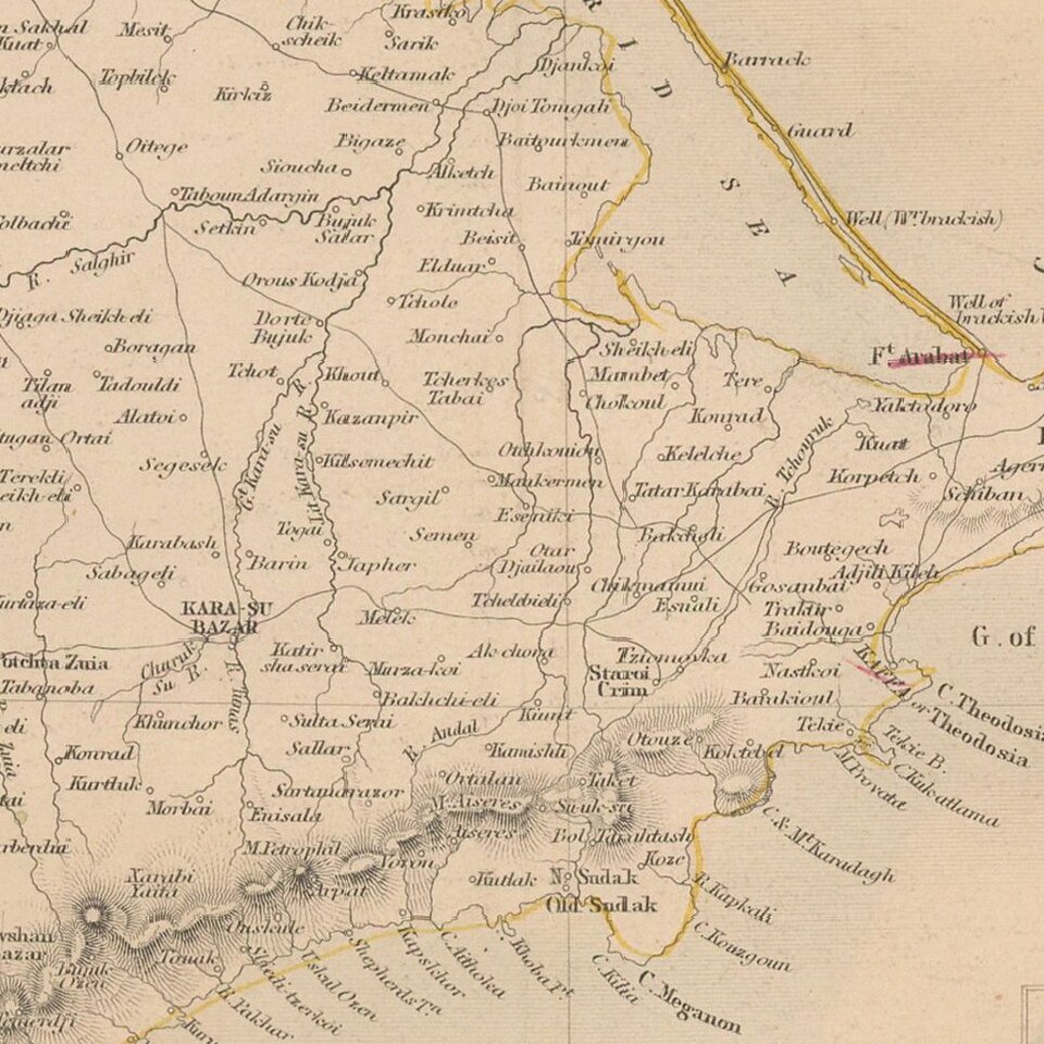 Nice full color example of Rapkin' map of The Crimea, in the style of the maps of John Tallis