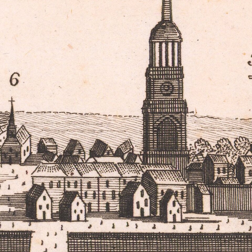 The view is based on George Heap's famed drawing of the City, created in 1752 and published in Philadelphia by Nicolas Scull in about 1754.