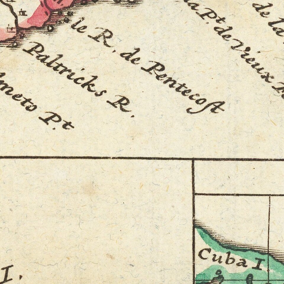 Over the course of his career, he published dozens of geographies, atlases, and histories, not to mention numerous sheet maps. His most famous works are Atlas Geographus, a monthly magazine that ran from 1708 to 1717, and The World Described (1715-54). He also frequently made maps for books, including those of Dampier’s publications and Swift’s Gulliver’s Travels. Moll died in 1732. It is likely that his plates passed to another contemporary, Thomas Bowles, after this death.