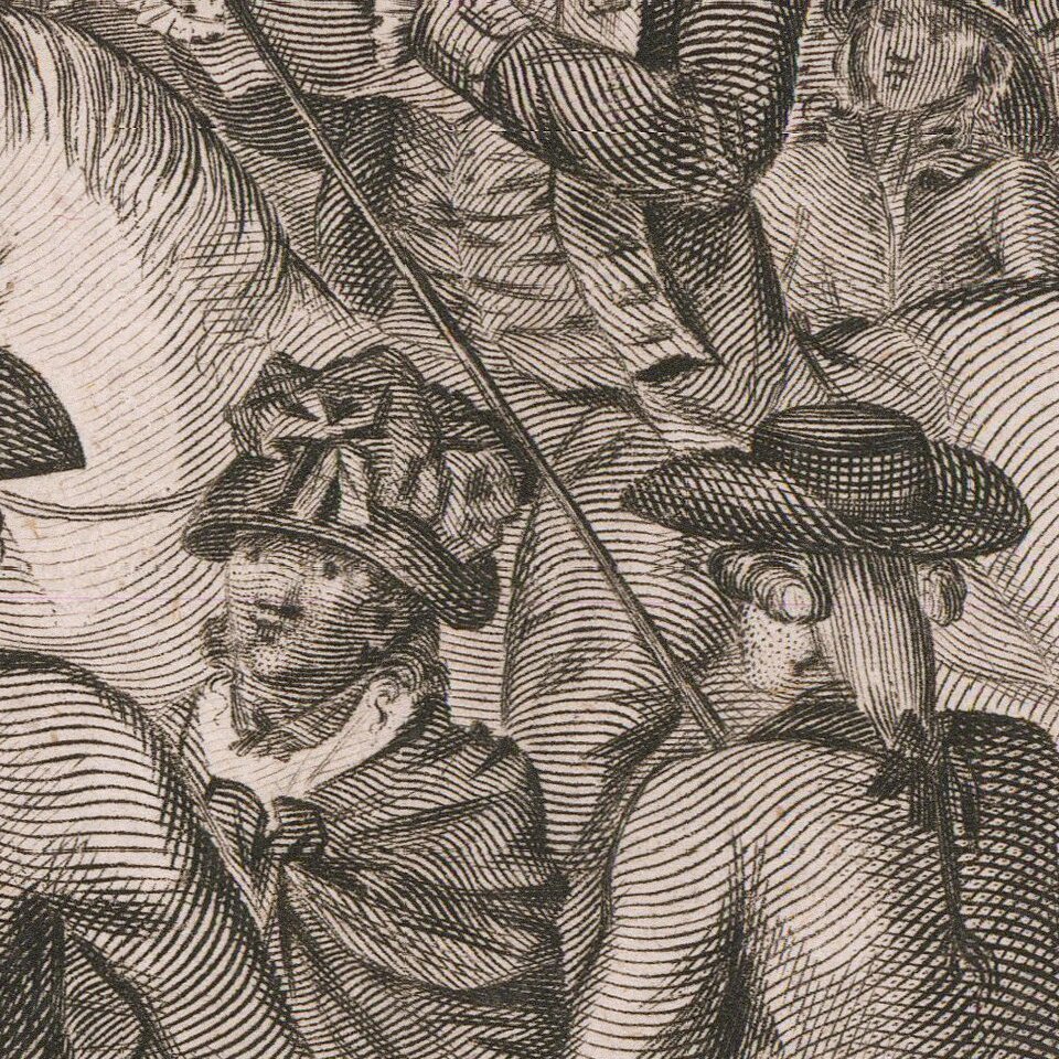 The print is surrounded by a highly stylized border with a royal military motif at the bottom.