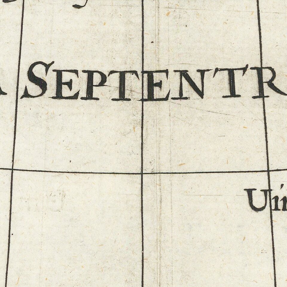 This emphasis on the Northwest Passage is reflected in the notes included in the interior of North America, which explain how the height of the tides observed by Thomas Button throughout Hudson’s Bay strongly suggested the existence of the much-hoped-for passage. Button had recently completed a voyage of discovery in the west of Hudson’s Bay in 1612-3. The focus on the Northwest Passage was also underlined by the location of the map in Purchas’ edited work. It was included alongside A treatise of the North-West Passage, also by Briggs, in volume three of Purchas’ collection.