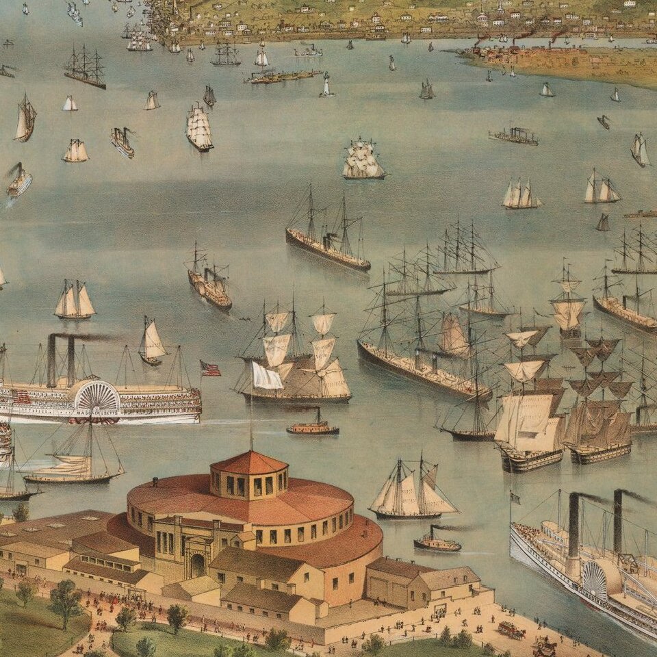 Currier & Ives' definitive 19th-century view of the bustling Harbor of New York.