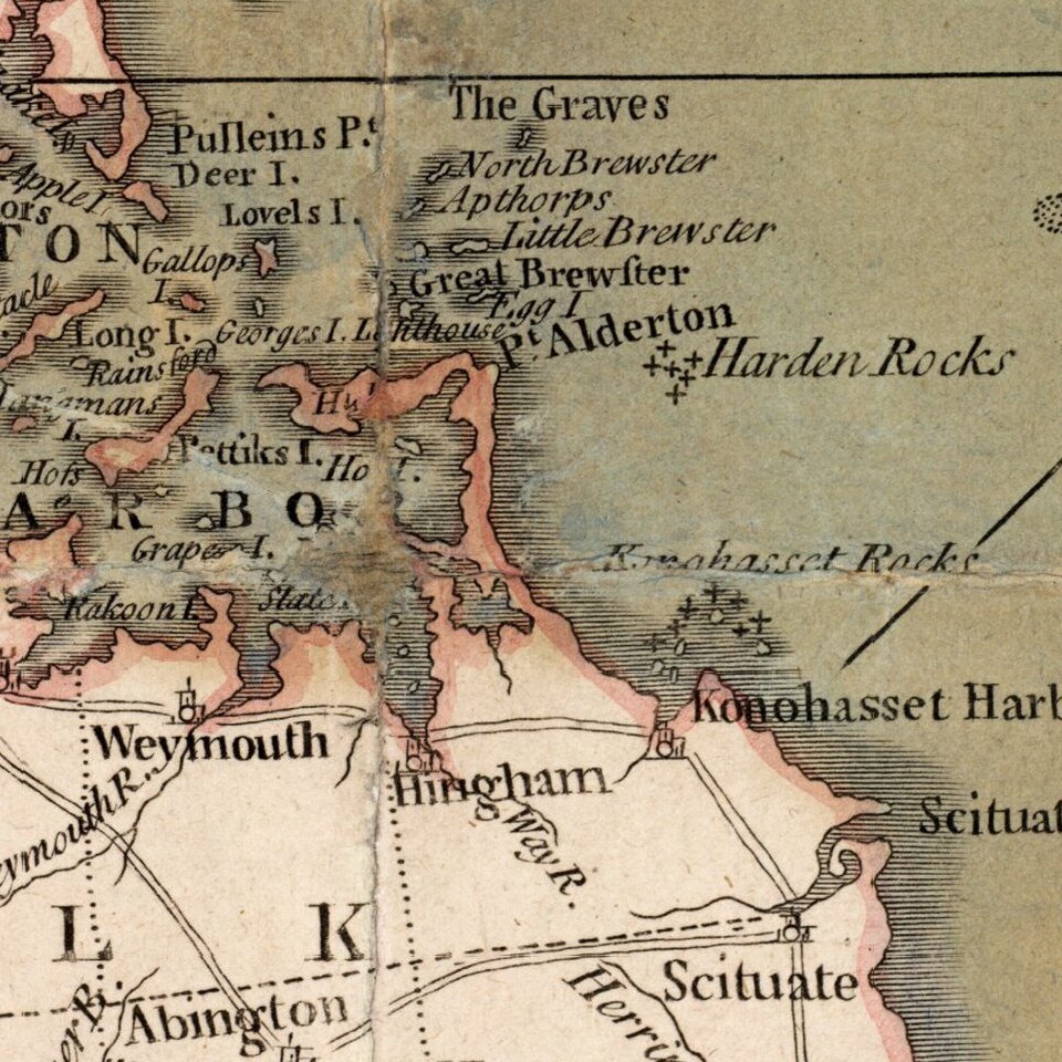 Sayer & Bennett's broadside map consists of three maps from two engraved plates printed on one sheet. The larger map is based on Thomas Jeffreys' " Inhabited part of New England. . . ." and includes an overview Southeastern New England showing the convergence of American troops from New Hampshire, Connecticut and Rhode Island towards Boston, along with Washington's route from New York bringing troops and artillery, which proved decisive in the battle. Two insets, one of the harbor and one of the city of Boston and the Charlestown peninsula with a depiction of the Battle of Bunker's Hill. The smaller inset in the upper right is a plan of Boston Harbor.