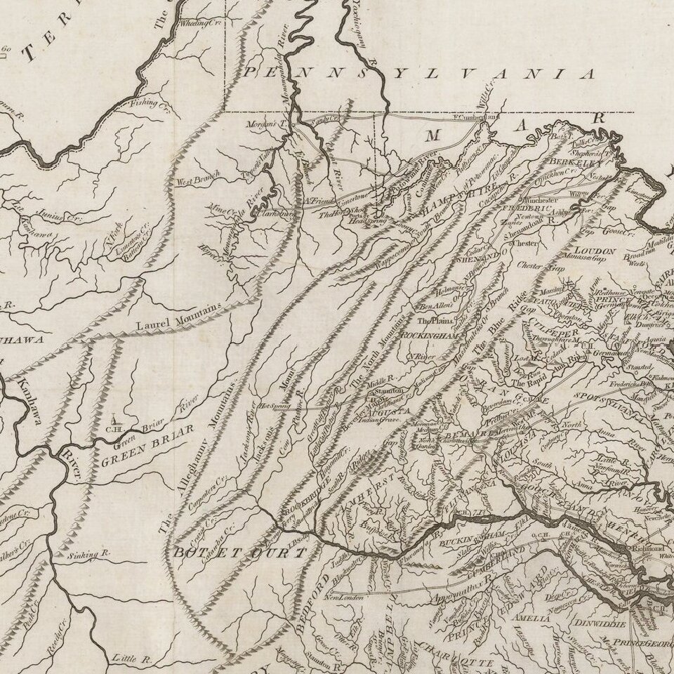 First edition of Carey's map of Virginia, one of the earliest obtainable maps of Virginia published in the U.S.