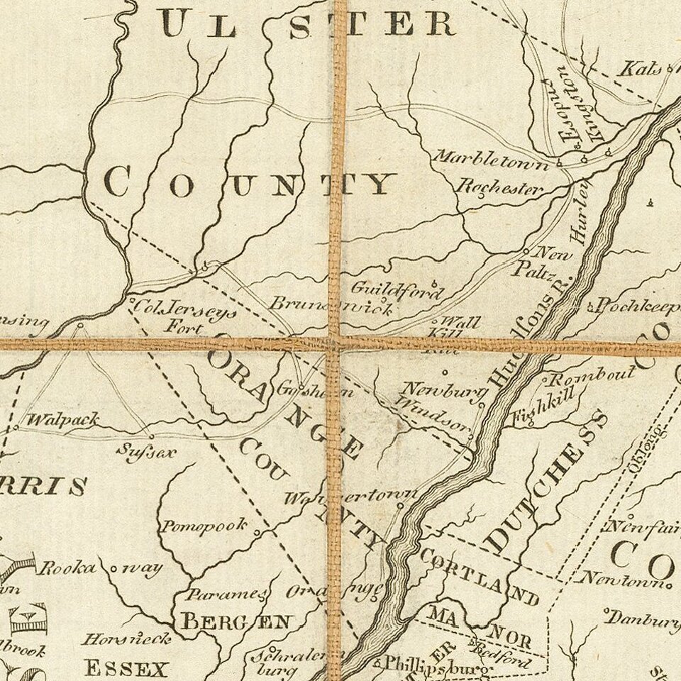 The present map employs a curious angular projection, and is centered on New York and the Hudson Valley, but extends from the upper reaches of Chesapeake Bay in the southwest, to Boston in the northeast. All significant towns and each county are labelled, while major roads and intercolonial boundaries are delineated. Issued in 1777, the map provides the viewer with a fine overview of the geography and transport corridors of what was then the main theater of the American Revolution.