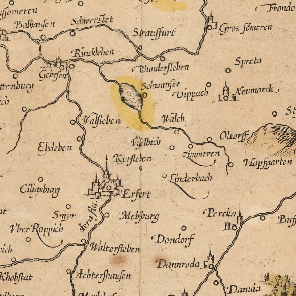 Henricus Hondius (1597-1651) was a Dutch engraver and mapmaker, a member of a prominent cartographic family. His father, Jodocus Hondius, was also an engraver and geographer. While working with his father, Henricus was instrumental in the expansion and republishing of Mercator’s atlas, first published in 1595 and republished by Hondius in 1606.