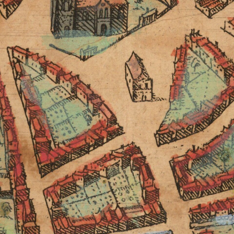 Georg Braun (1541-1622) was born and died in Cologne. His primary vocation was as Catholic cleric; he spent thirty-seven years as canon and dean at the church St. Maria ad Gradus, in Cologne. Braun was the chief editor of the Civitates orbis terrarum, the greatest book of town views ever published. His job entailed hiring artists, acquiring source material for the maps and views, and writing the text. In this role, he was assisted by Abraham Ortelius. Braun lived into his 80s, and he was the only member of the original team to witness the publication of the sixth volume in 1617.