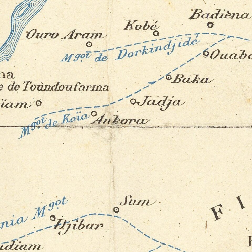 The map offered here was prepared by Lieutenant Hourst, Niger Fleet Commander, and Lieutenant R. Bluze of the French Marines, to illusrate their report on the region, published for the French Geographical Society. The report provided a detailed overview of the hydrography and the feasibility of French military control over the region, by managing river transportation.