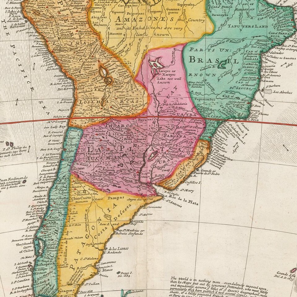 Striking large format map of South America, published by Herman Moll, one of the leading English map makers in the first half of the 18th Century.