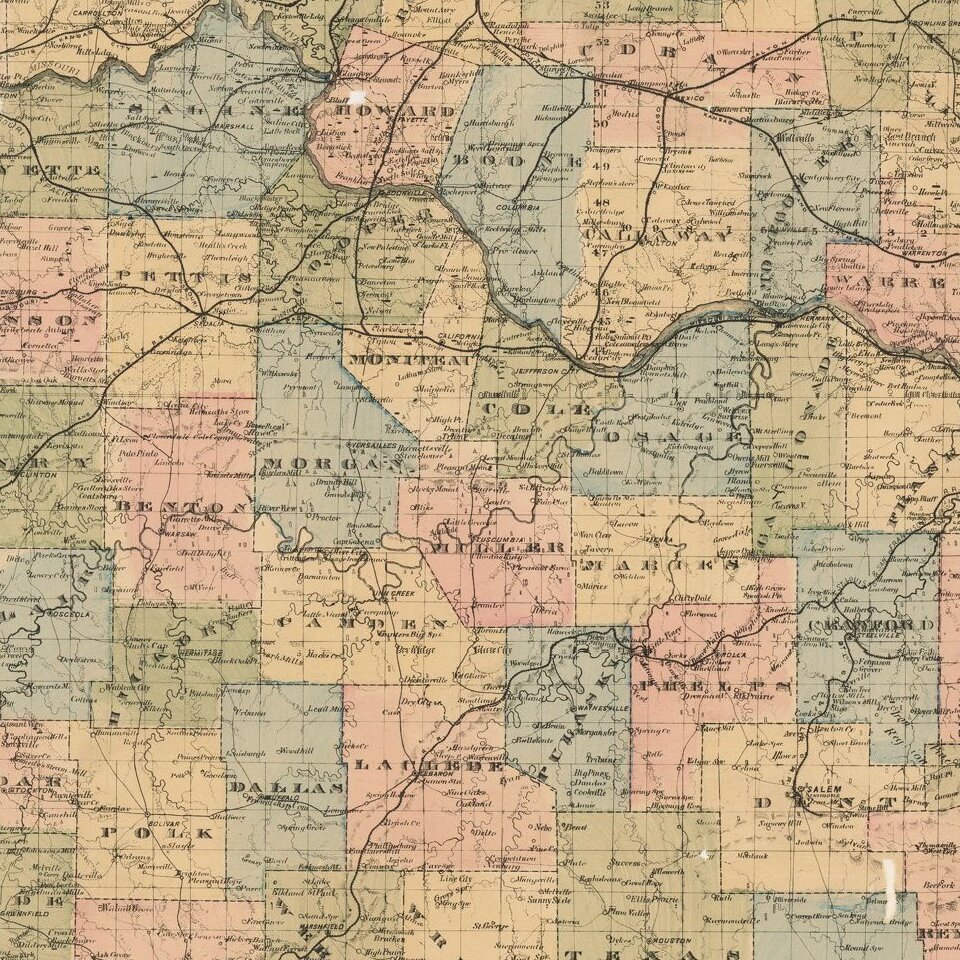 Rare separately published map of Missouri, published by the St. Louis Immigration Society.
