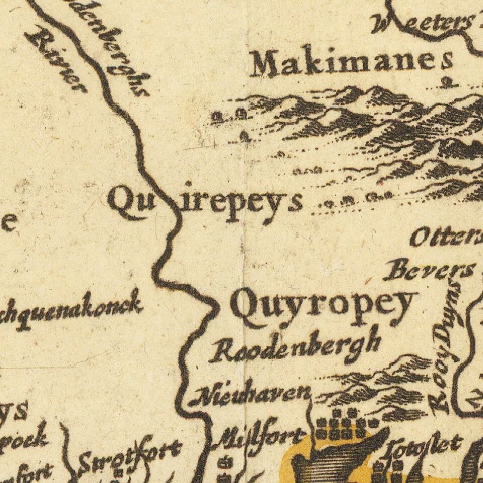 Ottens map faithfully follows the cartographic details of the Jansson-Visscher map of the region, which provided a significant improvement over other maps of the region.