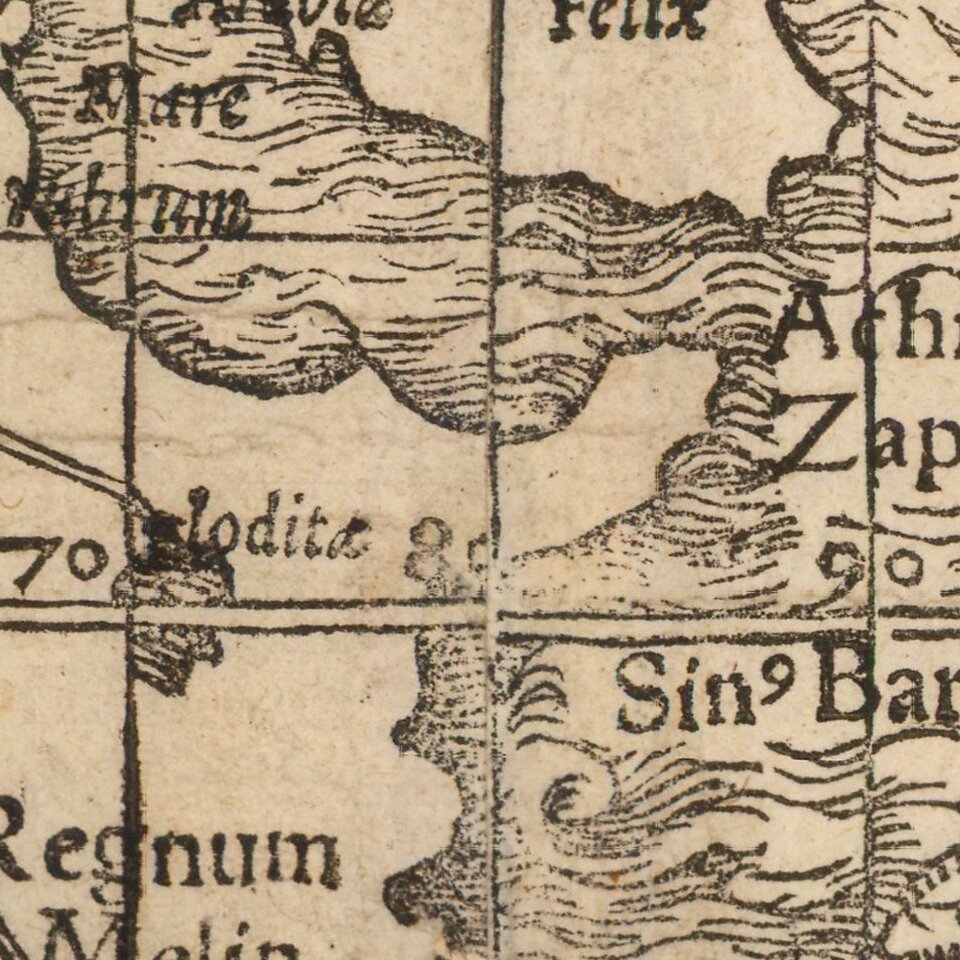 The map's exquisite border decorations as attributed to Hans Holbein the Younger (1497-1543), one of the greatest artists of the Northern Renaissance. Holbein, originally from Augsburg was working in Basle at the time, before moving to London to become the official court painter to Henry VIII.