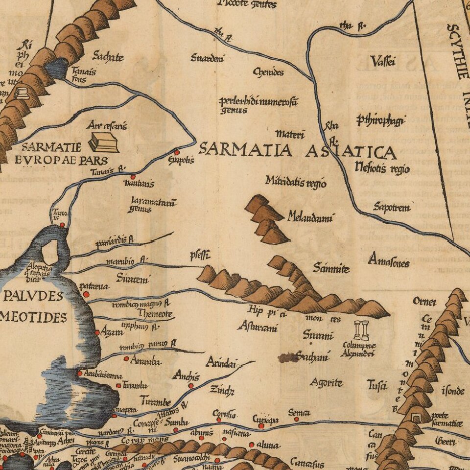 Detailed map of the region north of Black Sea and west of the Caspian, from the 1535 edition of Fries Geographia.