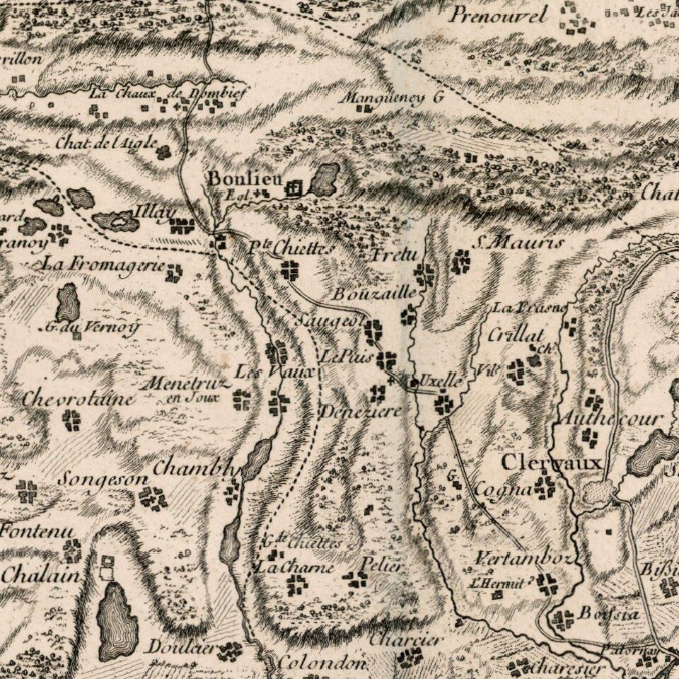 The map is centered on Terre De Saint Claude and shows the Bailliages' of Pontarlier, Salins, Quingey, Poligny, Arbois, Gex, Bugy, Saunier and Orgelet.