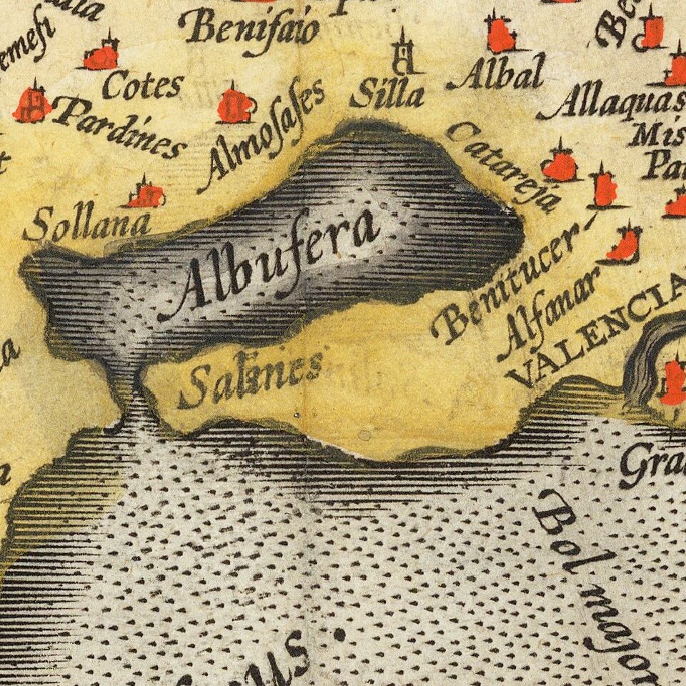 Old color example of this very rare edition of Ortelius' map of Valencia, which appeared only in the 1584 edition and in a very few examples of the 1592 edition, The map extends from Murcia and Orihuella to the Cenia River and extending inland to include a bit of Aragon and Castilla, centered on Valencia. From the 1592 Latin edition of his Theatrum Orbis Terrarum. Includes a massive cartouche and with large sailing vessels. This appears to be an even rarer variant than noted in Van den Broeck, as it bears the page number 19, which is not recorded by Van Den Broecke for the 1592 editions of the map. A some staining in the title and several minor wormholes near the lower centerfold, into the printed image, but still a good example of this rare variant. Van den Broecke 30.