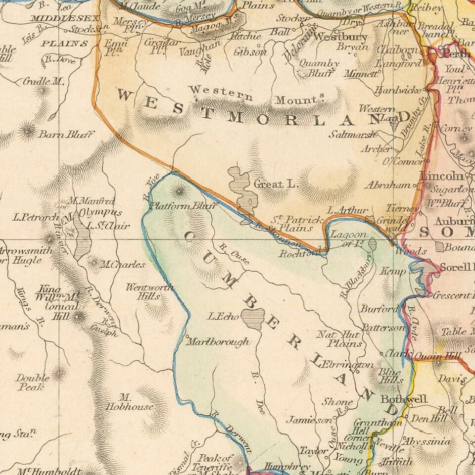 Stunning full color example of this marvelous map. Decorative Vignettes of Hobart Town, the Residence of the V.D.L Company's agent, Circular Head and two other vignettes.