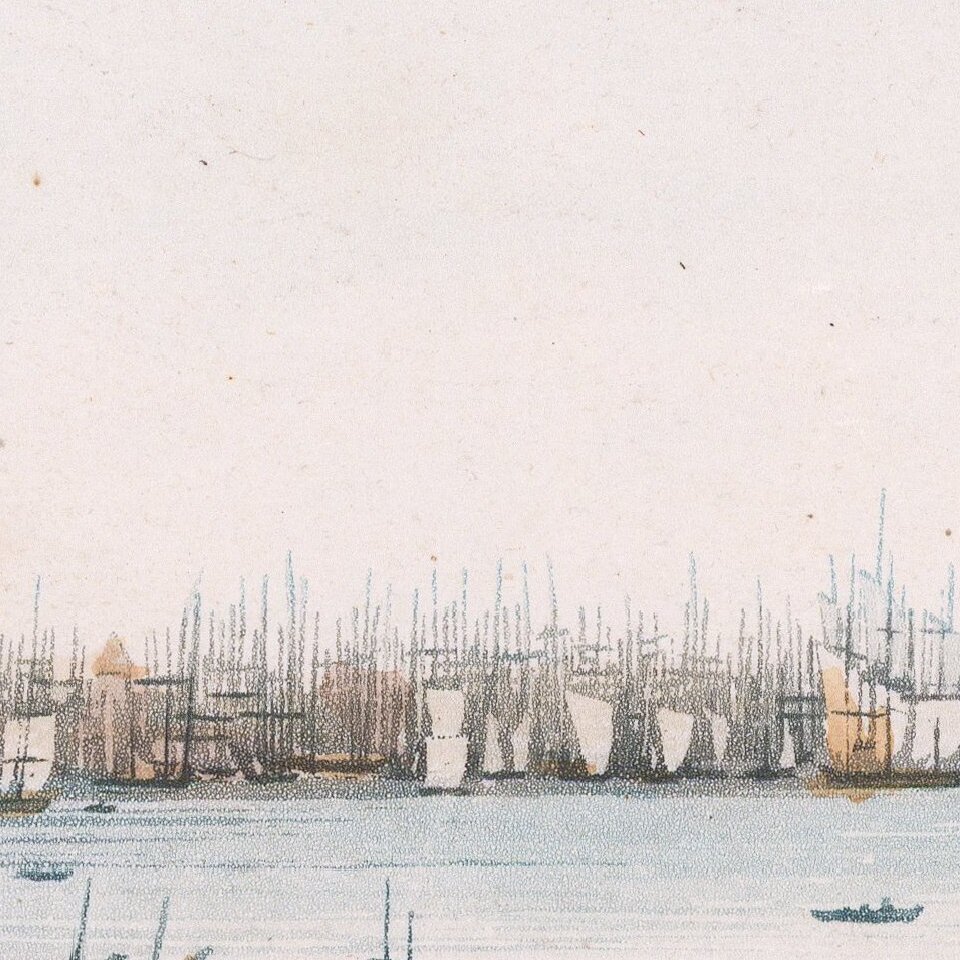 Finel view of the port of Havana, with the city in the distance and a rural scene in the foreground.