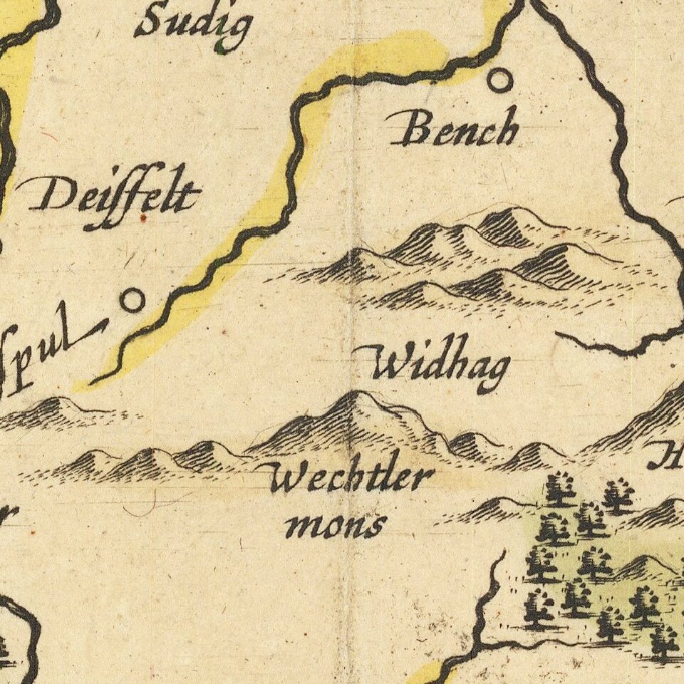 Finely colored example of this regional map of the County of Waldeck, published in Amsterdam by Blaeu.