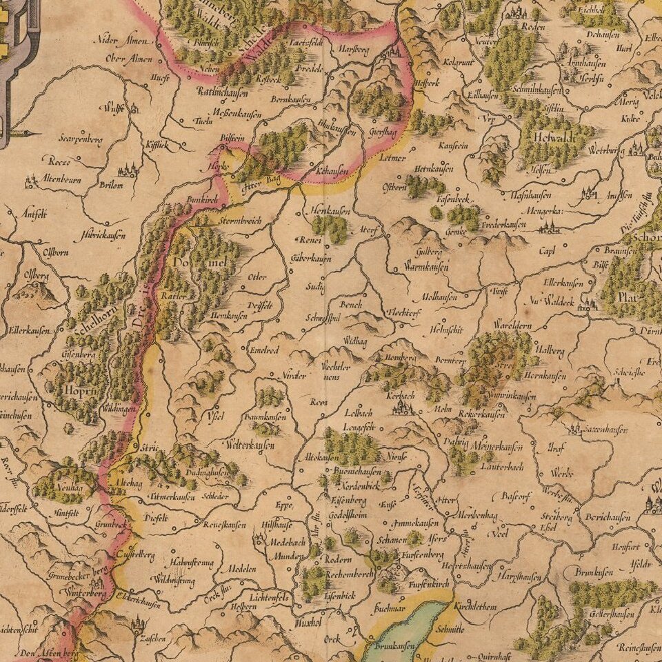 Rare first edition of Mercator's detailed regional map of Germany, originally published in the first edition (1595) of Mercator's atlas.