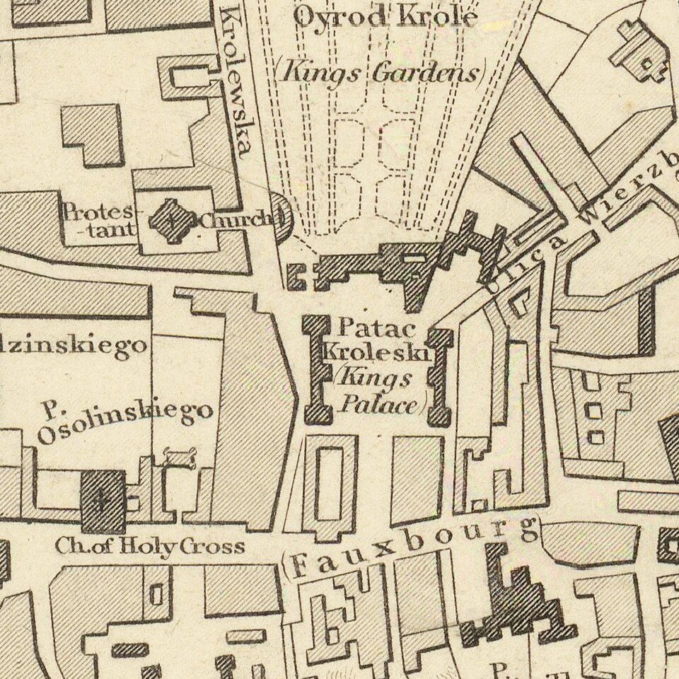 This map was published during the end of a brief period of autonomy that had existed since liberation by Napoleon. The Polish-Russian War of 1831 lead to increased control from Russia. A major event in this war was the burning of Praga in 1831, noted on the map. The period during Russian rule would see the arrival of the railways and industrialization. The first steps of modernization are already preserved in this map, such as the Royal University (now Warsaw University) built in 1816, shown but unlabelled.