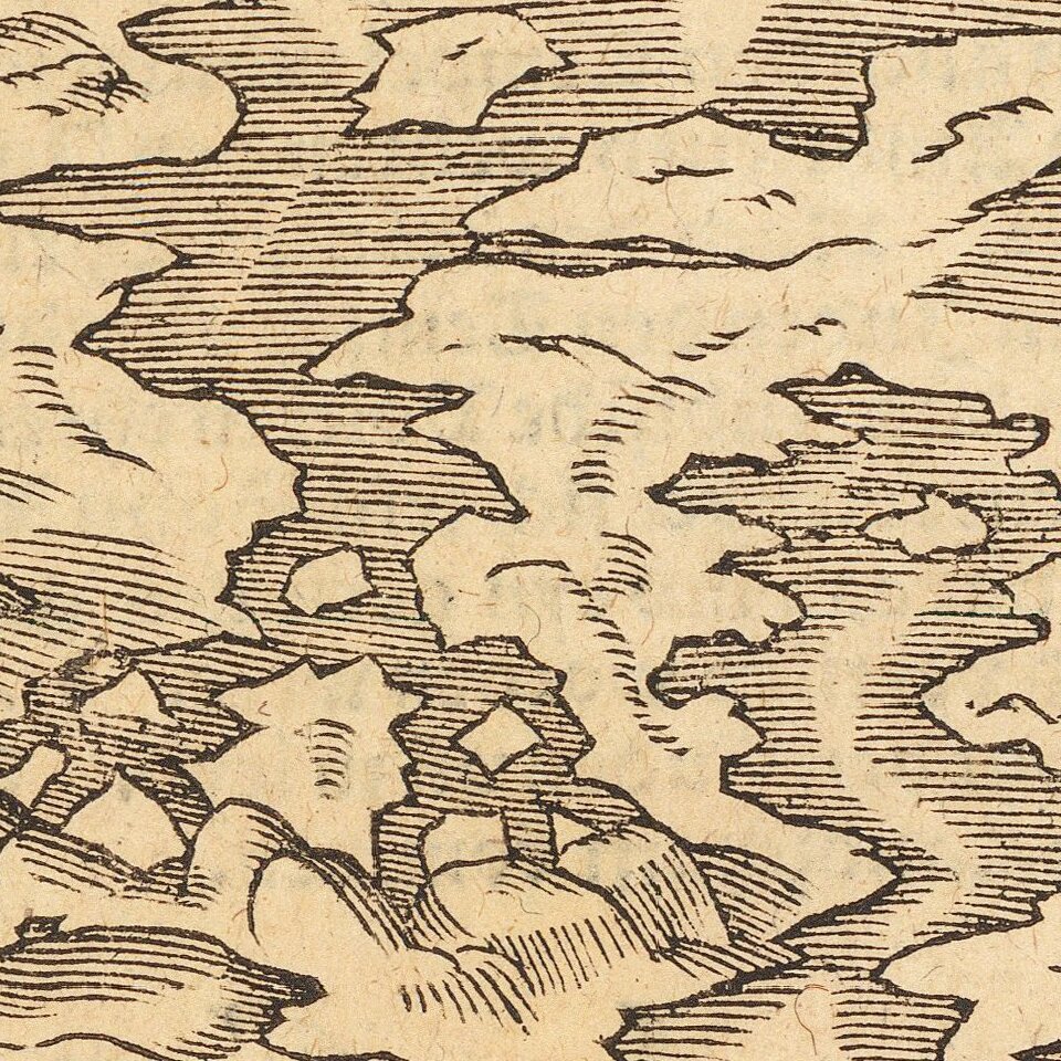 The map was originally used by the printer Hans Lufft to illustrate works on the prophet Daniel by Martin Luther and others, linking the vision of Daniel with the assault of the Turks on Christian Europe. The map is a woodcut, showing the four beasts of Daniel's dream and the continents of Europe, Africa and Asia, along with four windheads. A fascinating graphical depiction of the World, based upon Ptolemy, but with all of Africa shown and an open water passage from the Atlantic to the Pacific.
