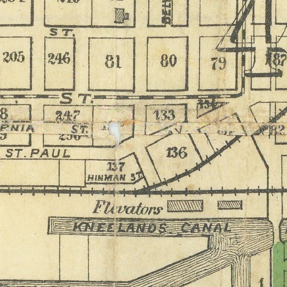The map is one of the larger 19th-century maps of the largest city in Wisconsin. The map goes as far north as just above the present-day campus of the University of Wisconsin, Milwaukee, which is illustrated as a large blank square on this map. In the south it reaches the Bay View neighborhood. To the east, the map reaches the National Home for Disabled Volunteer Soldiers, which was founded to care for injured Civil War veterans in 1867.
