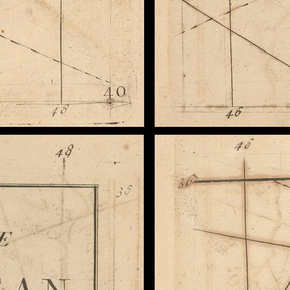 The sheet in the upper right shows the tip of northwestern Africa, separated from Europe by the Strait of Gibraltar, which when this map was published was guarded by the British garrison at Gibraltar. Most of the Iberian Peninsula is visible, as is France and the Netherlands. All except the very northern part of the British Isles are included.