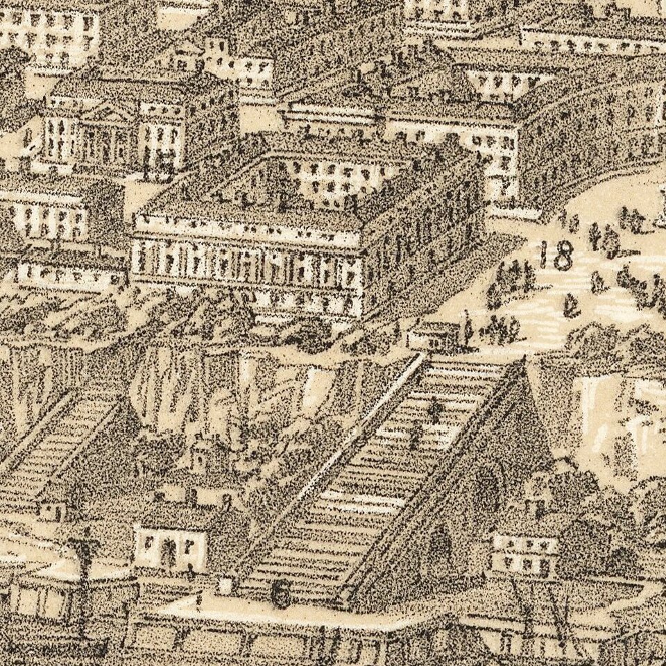 The view include a key locating 30 points of interest, and is based upon a drawing by Whittock.