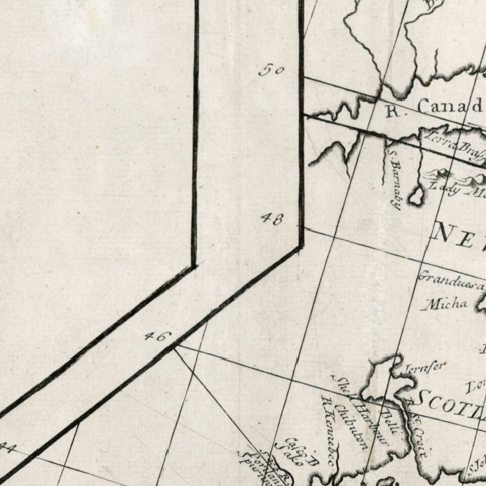 The rich Grand Banks fishing area is marked in detail, as is the Eastern seaboard of what was then the British colonies in North America. A note in the far north, where coastal detail is sparser, references the findings of a Captain Davis. John Davis (1550-1605) was a skilled navigator who worked in the service of Queen Elizabeth I and commanded several Arctic voyages in search of the Northwest Passage. The Davis Strait is named for him.