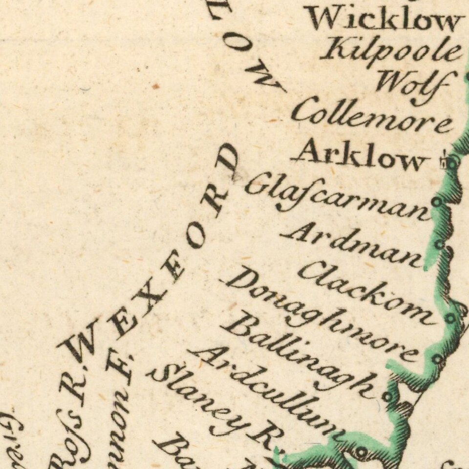 A handsome mid-18th century map of Ireland and the St. George Channel or Irish Sea.