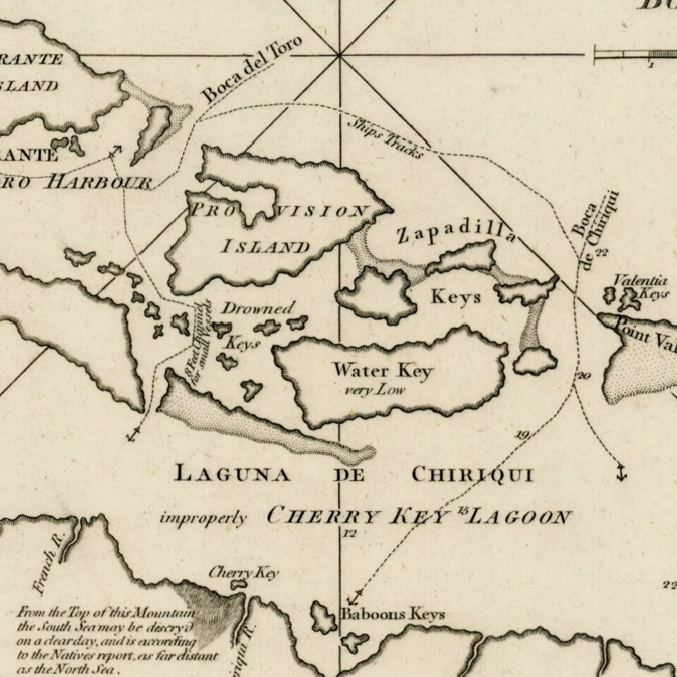 Rare early plan of the region around Bahia Del Almirante or Bocatoro Harbor, published by Sayer & Bennett, one of the earliest obtainable English Plans of the harbor.