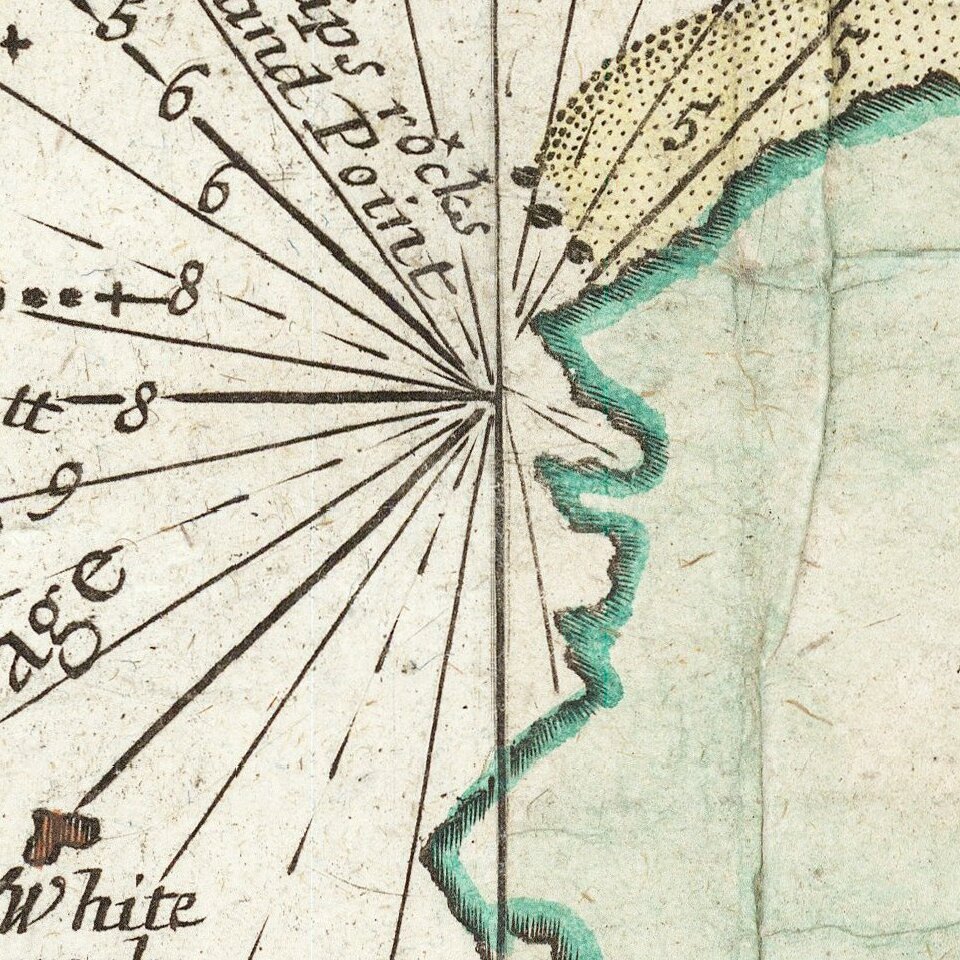 While Thornton largely based his charts on those of earlier Dutch cartographers, most notably those found in Pieter Goos' Zee-Spiegel and Lucas Janz Waghenaer's Mariner's Mirror, The English Pilot proved to be enormously popular. When John Thornton died in 1708, his brother Samuel continued the work and expansion of the book, ultimately selling out to Mount & Page, who continued the work for over half a century.