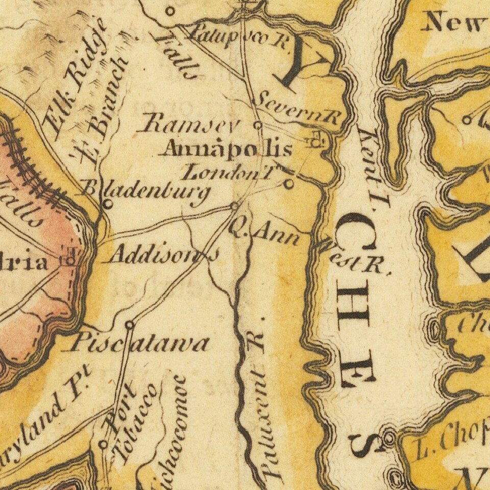 The map is drawn from John Mitchell's seminal map of the British Colonies in North America and is on nearly the same scale.