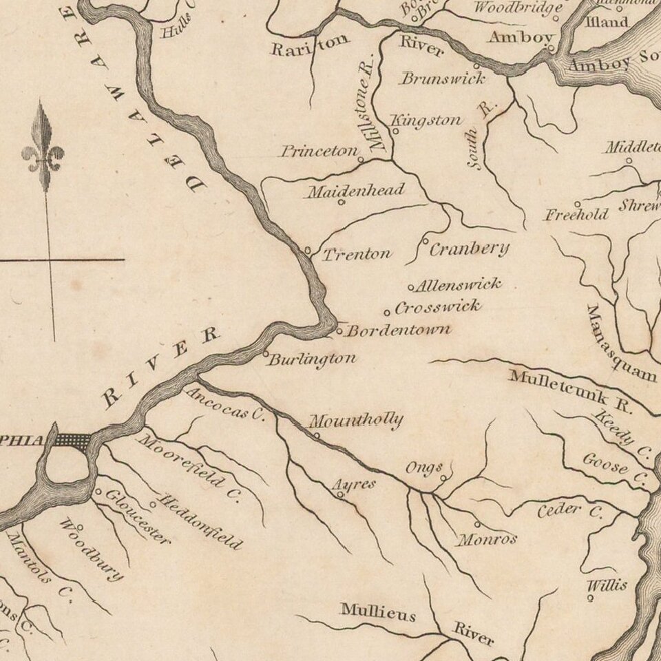 This map is quite possibly the first English language map of New Jersey published following the conclusion of the American Revolution and one of only a few maps of the state published prior to 1800.
