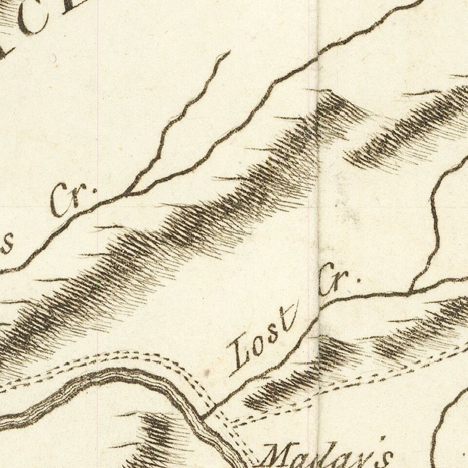 Sayer & Bennett provide a revised and improved version of Scull's map, with clearer topographical delineations and including latitude and longitude markers. These improvements were likely added to aid British troops fighting in North America.