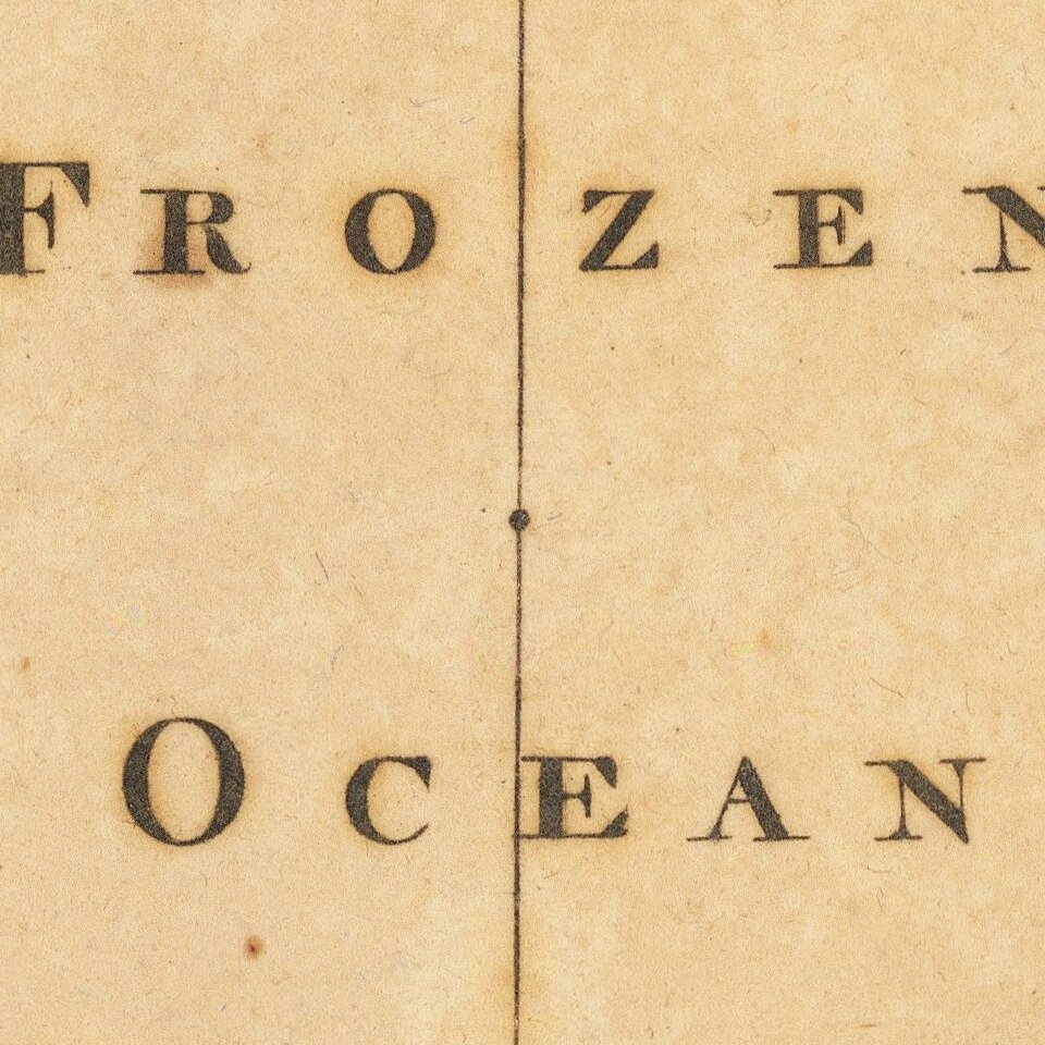 Early American map showing the extent of explorations in the North Pole, with emphasis on the efforts to find a Northwest passage and Hearne's and MacKenzies' routes.