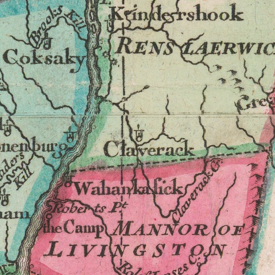 A highly detailed extending from Delaware Bay, New Jersey in the South to New York-Canada border, and including large parts of Pennsylvania, the Country of the Six Nations and Vermont, based upon a map of same title by C.J. Sauthier, one of the primary English map makers during the American Revolution.