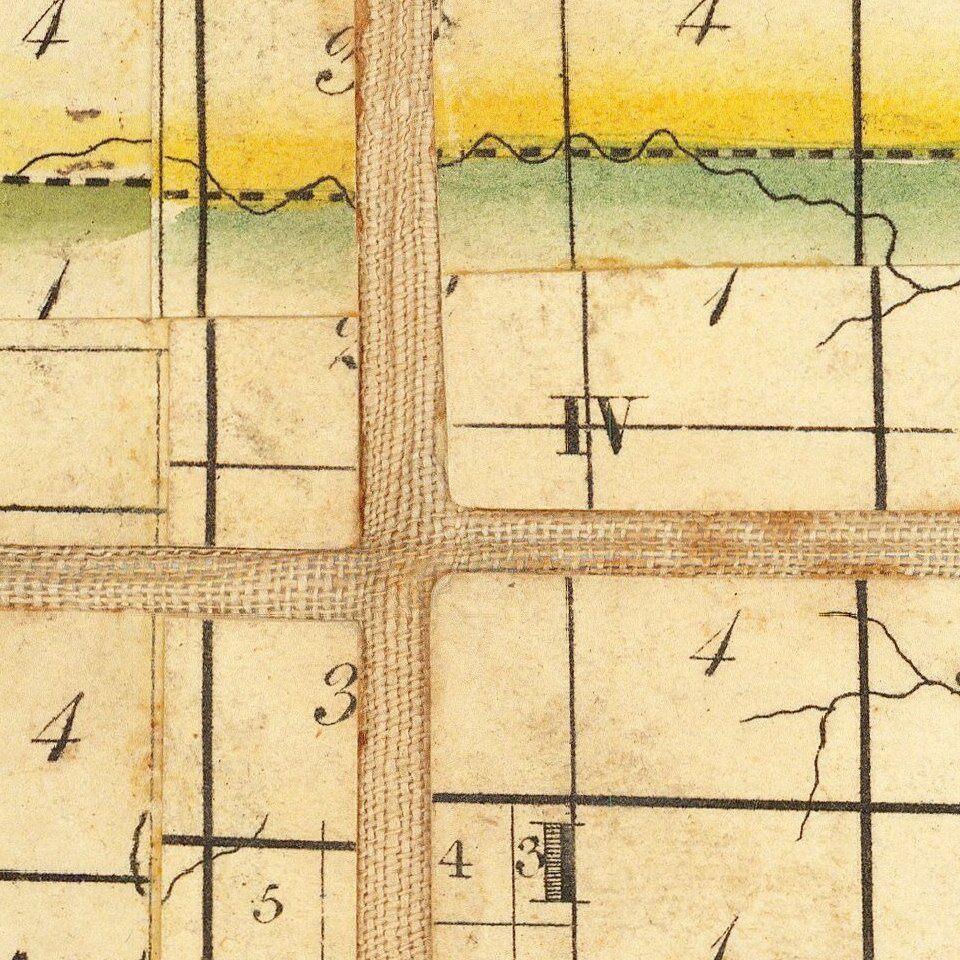 This large and detailed map of Ohio shows rapid progress of the township grid from the original surveys in the eastern part of the state in the 1790s. In southern Ohio some of the areas claimed by land companies established in the colonial period were surveyed and parceled out prior to 1795, and their irregular patterns, conforming more to topography than geometry, are in strong contrast to the tyranny of the grid. Similar collisions of old and new systems of land tenure and surveying can be seen elsewhere in the country, particularly along the lower Mississippi where a pattern of plantation strips running back from the river established by the French settlers encounters the later American squares. Such patterns in the landscape are best seen from airplanes; they reward the traveler with an atlas and a window seat.Negro Town