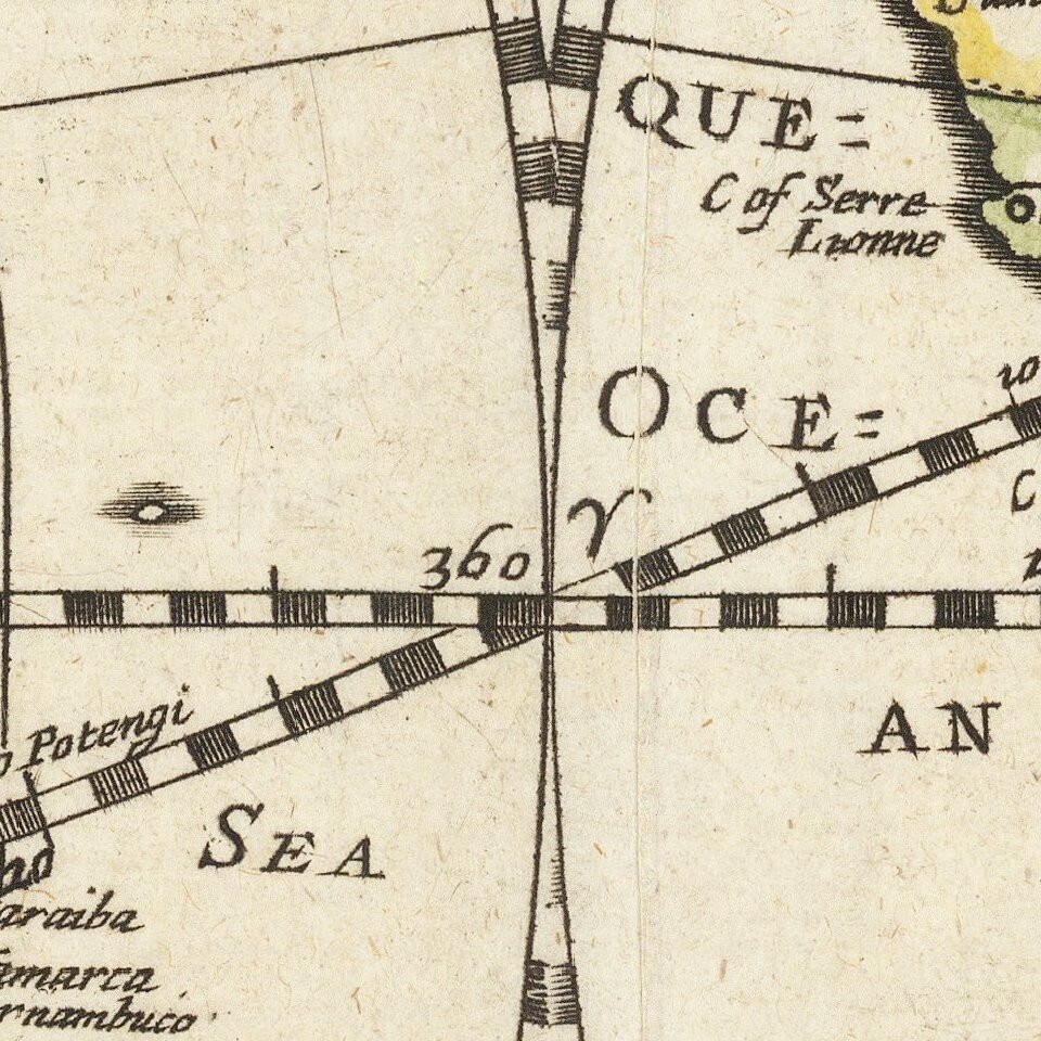 Blome's map breaks from both the Dutch tradition of Baroque embellishment and the French style of sparse surroundings of the hemispheres, creating a unique combination of decorative embellishment and symbols of the British Empire, making it a visually unique and striking world map. The engraving work is probably attributable to Francis Lamb, although Shirley surmised that Wenceslaus Hollar or Thomas Burnford may also have been the engraver.