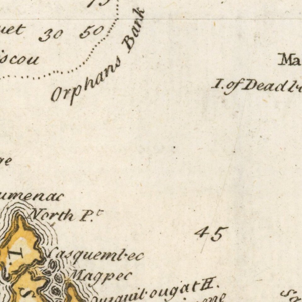Shows in detail the Eastern coast of Canada with depths in soundings. Insets of Quebec City, Fort Dauphine, the Atlantic Ocean, and a Plan of City and Port of Louisbourg appear on this chart. The Louisbourg and Quebec insets each contain a key to greater detail.