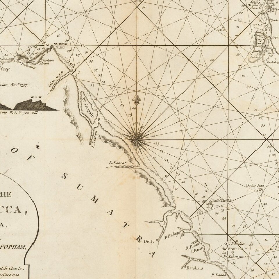 Published in "The East-India Pilot, or Oriental Navigator, on One Hundred and Eighteen Plates: Containing a Complete Collection of Charts and Plans, &c..." The chart is based on the 1745 French "Neptune Oriental" by Jean Baptiste Nicolas Denis d'Apres de Mannevillette, supplemented by English navigators.
