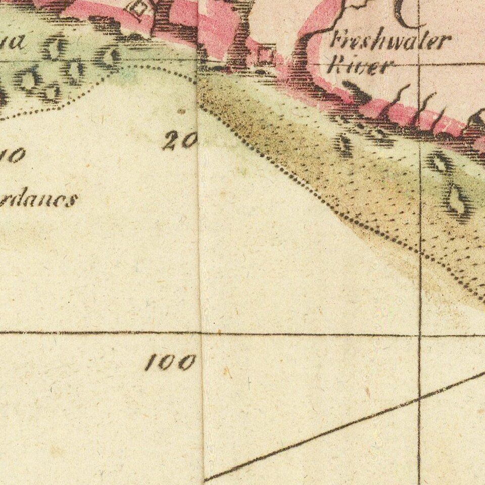 Scarce map of Cuba, the Bahamas, the southern tip of Florida and contiguous islands, highlighting the various trade routes in the Caribbean.