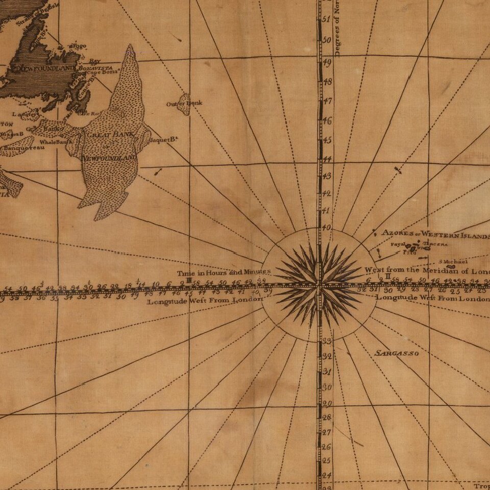 Unrecorded map of the Atlantic Ocean, printed on linen, likely published in London about 1780.