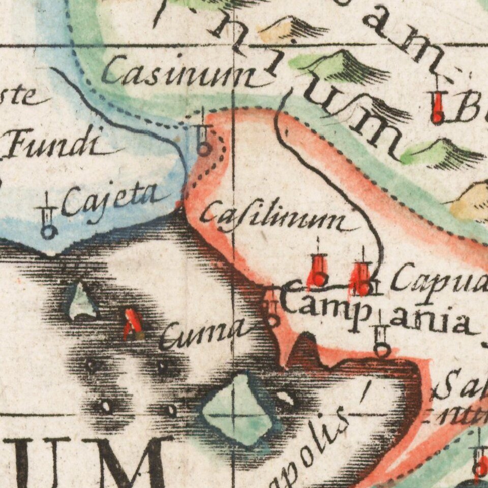 Decorative anicent map of Italy at the beginning of the 18th Century.