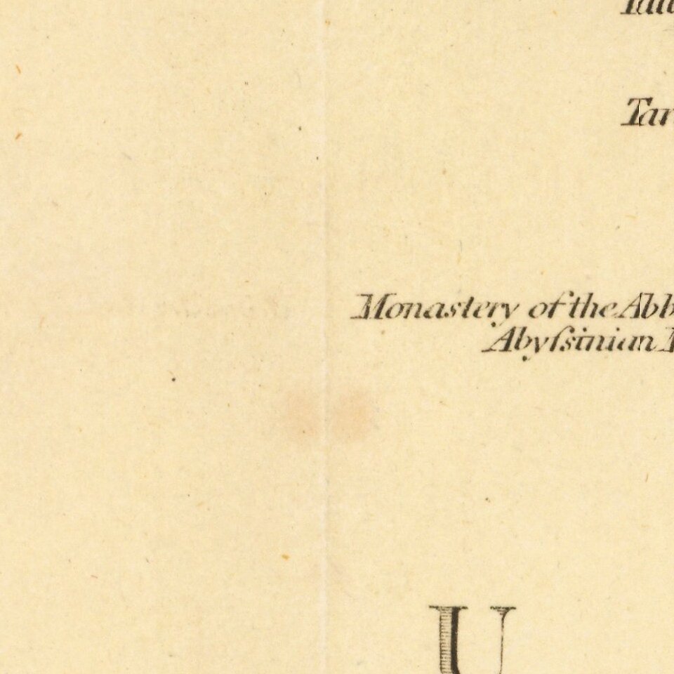 Extends from Oasis Magna and Shek Haled to Arabaia Petraea. Includes various trade routes, towns, islands, etc. The map extends to Alsuan or Suene and includes a number of notes along the Nile.