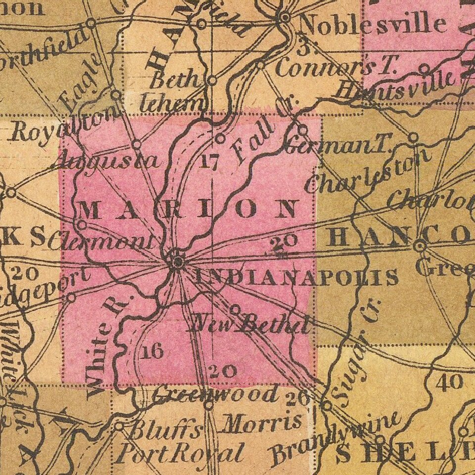 Detailed and interesting map of Indiana, hand colored by county.