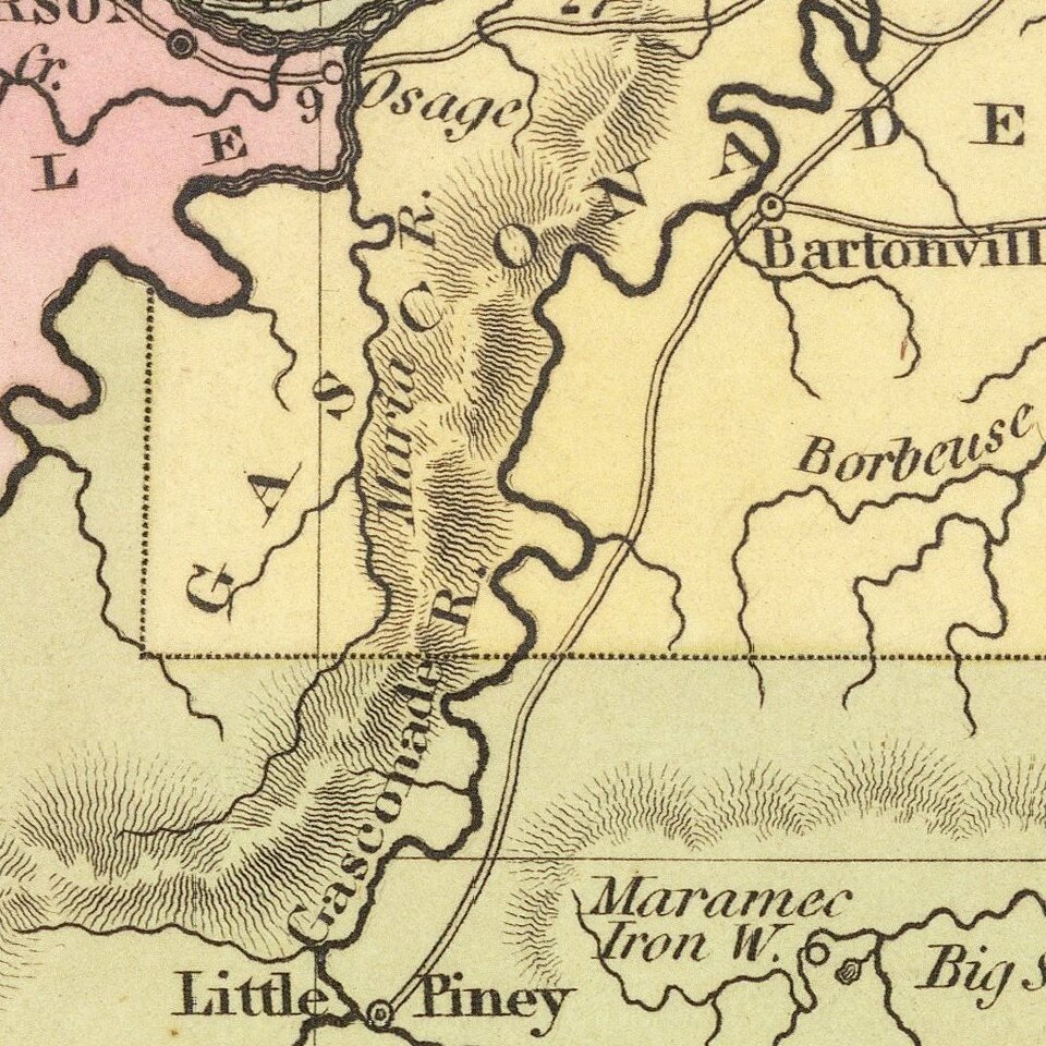 Includes a number of ovesized counties, including Barry, Taney, Ripley, Pulaski, etc. The Bounty Lands appear, as does the Addition of 1836.